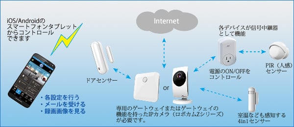 ドアセンサーとZ-Wave対応ネットワークカメラを連動させた、ホームセキュリティーをはじめ、様々な活用方法が想定されます。